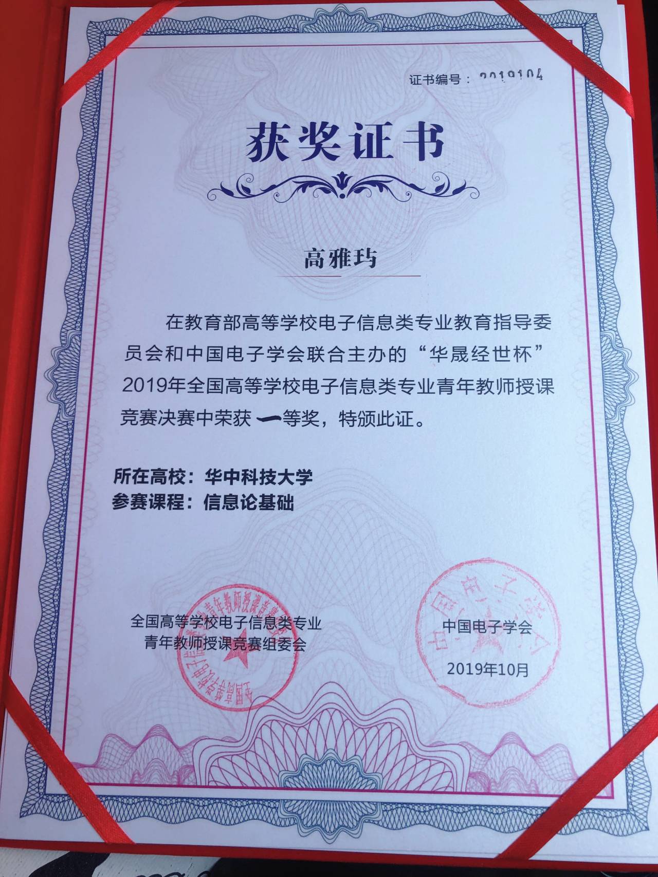 101920日,2019年全国高等学校电子信息类专业青年教师授课竞赛决赛在西安邮电大学举行。bwin必赢教师高雅玙继在预赛阶段获得华南赛区一等奖后,代表学校参加此次决赛,斩获全国一等奖的佳绩。