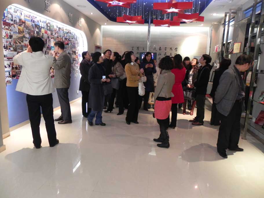 当晚8点半,这些来自国家电子电气教学指导委员会委员单位的教师代表在刘玉老师的陪同下,来到启明学院亮胜楼,早已守候在这里的启明学院刘燕老师热情地向客人们介绍了启明学院的由来,带领客人参观了一楼展厅。不少客人还在留言簿上签了名。