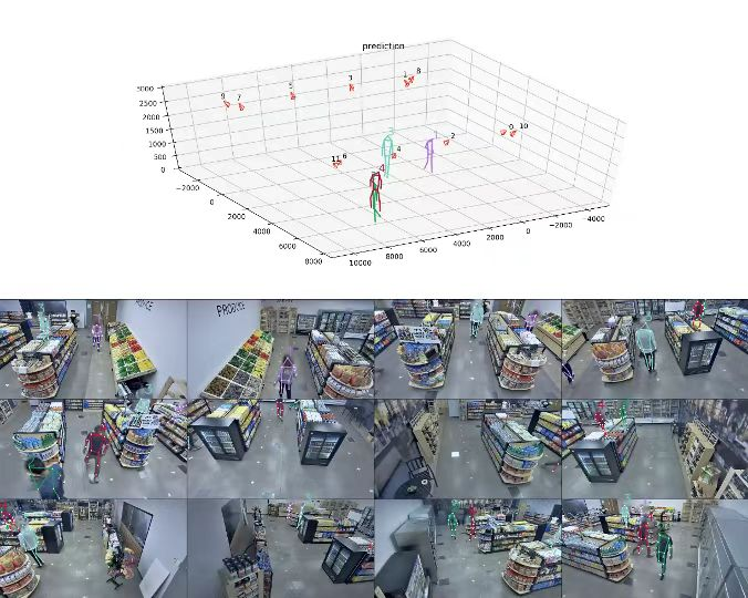 在IEEE TPAMI上的论文研究了多视角三维人体姿态估计和跟踪问题,是计算机视觉中最重要的任务之一,在元宇宙、虚拟现实、无人超市等场景有广泛的应用价值。该论文主要通过融合多视角视频信息解决单视角跟踪中的遮挡问题。文章提出了一个多分支网络同时估计环境中人的三维姿态和行人外观特征,该方法将多视角图像信息融合成三维体素(voxel)表征,通过体素表征学习得到人的三维姿态,避免了先前方法需要基于有噪声的二维姿态进行跨视角的匹配带来的累计误差,并同时考虑人体三维姿态坐标和外观进行遮挡感知的跟踪。本方法在多个权威多视角人体姿态估计和跟踪数据集上均取得了业内领先的结果,并已经在商超领域得到应用。