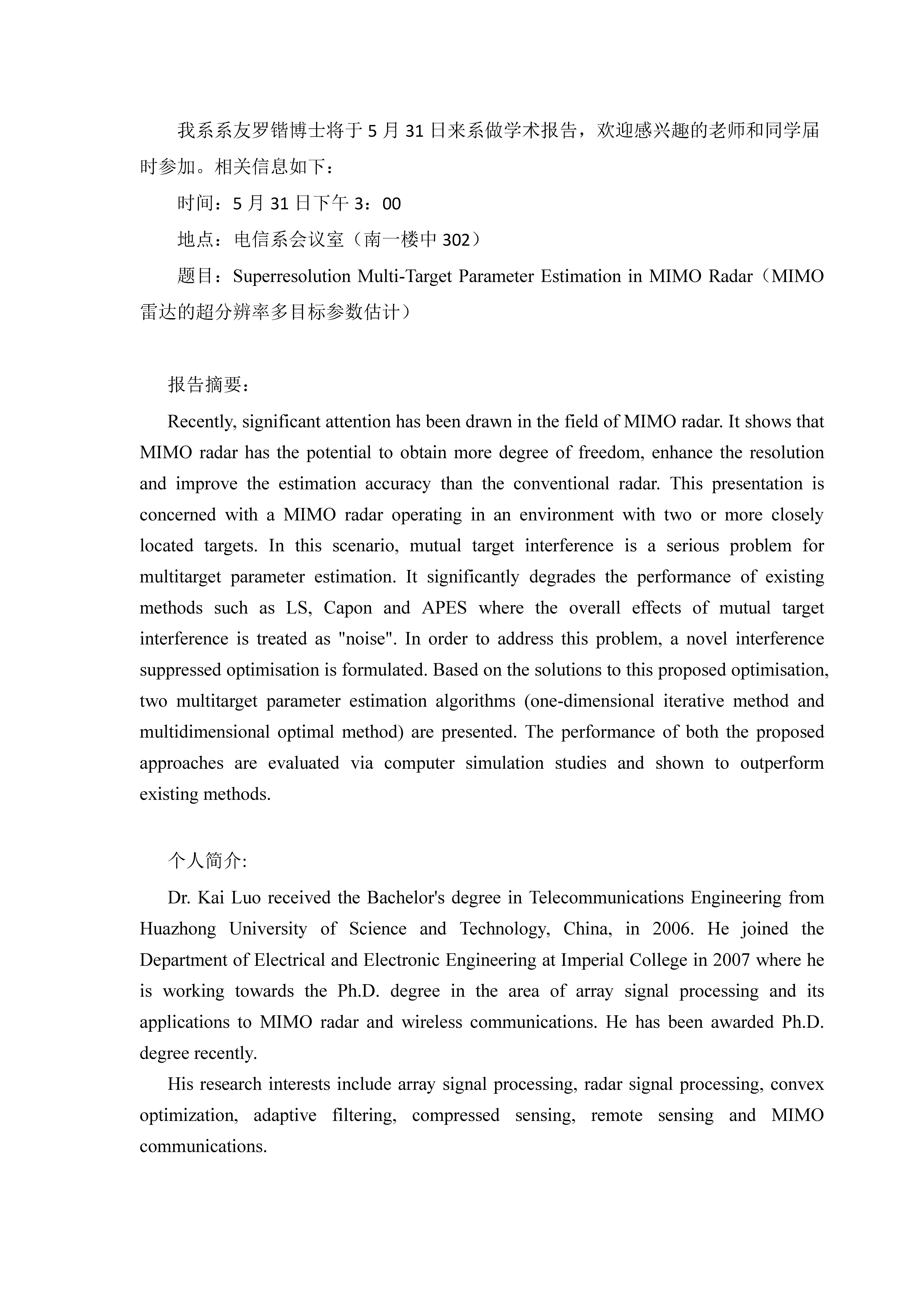 系友罗锴博士学术报告海报