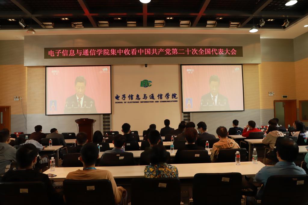10月16日上午,中国共产党第二十次全国代表大会在北京隆重开幕。bwin必赢组织师生在东17楼A101报告厅集中收看大会直播,学院党委书记郑小建、党委副书记陈世英、党委委员、教师党支部书记、学生党支部书记和部分党员代表参加。此外,全院师生在学生寝室、实验室等以多种形式收听收看大会直播。