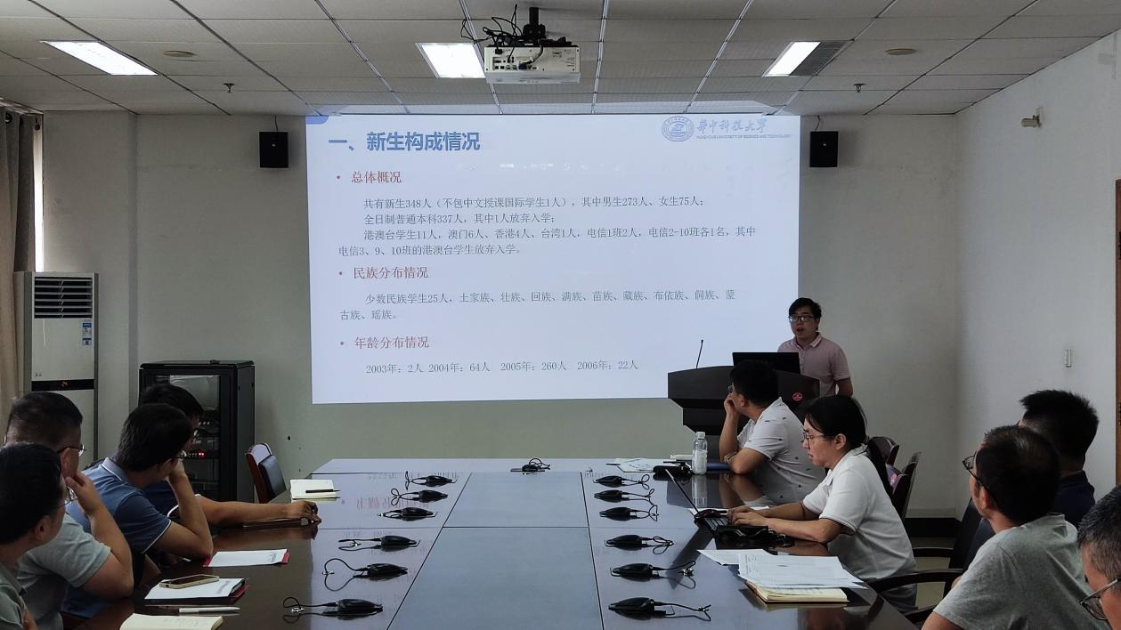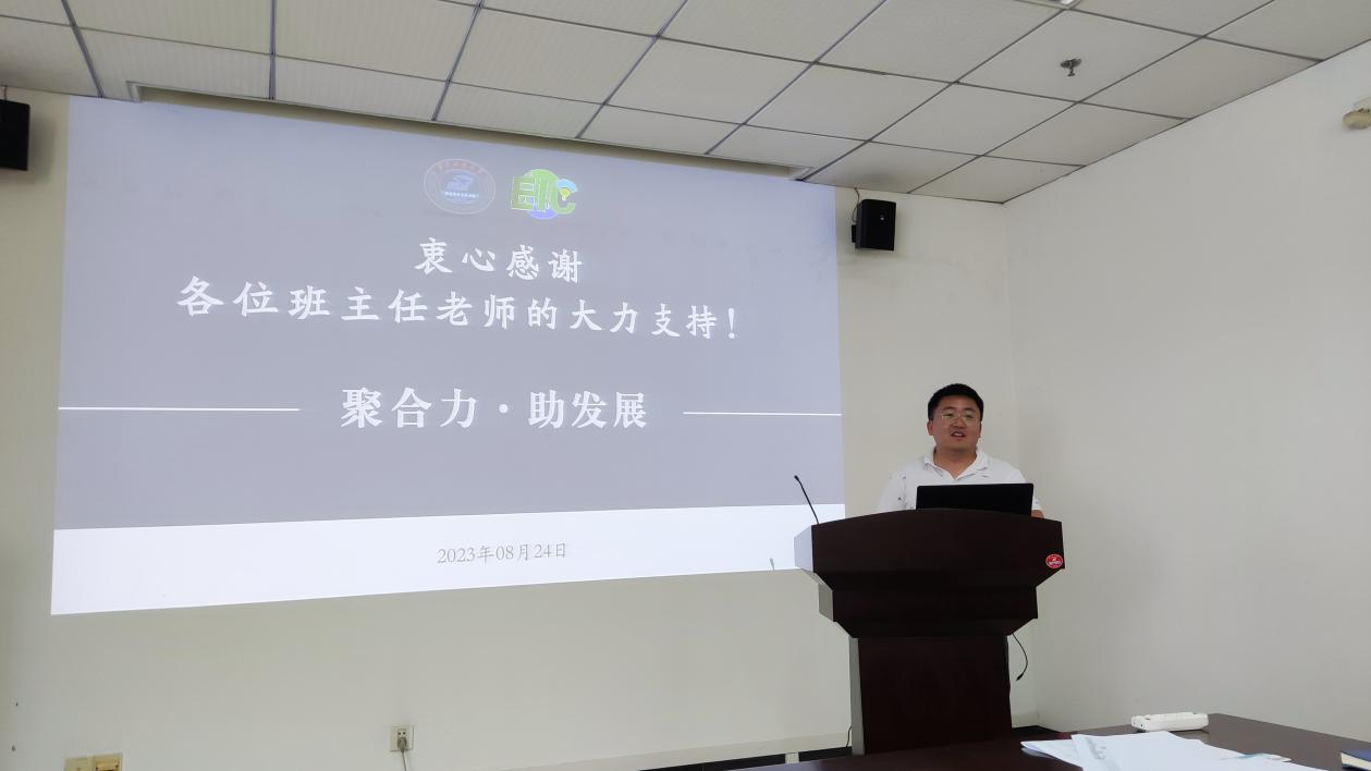 接着,辅导员翁付成带来2023级本科生情况及工作介绍,从民族构成、年龄分布、班级划分、住宿分布、入学教育安排及军训情况等方面全面叙述,根据新生入校期间的迎新工作安排提出了注意事项。