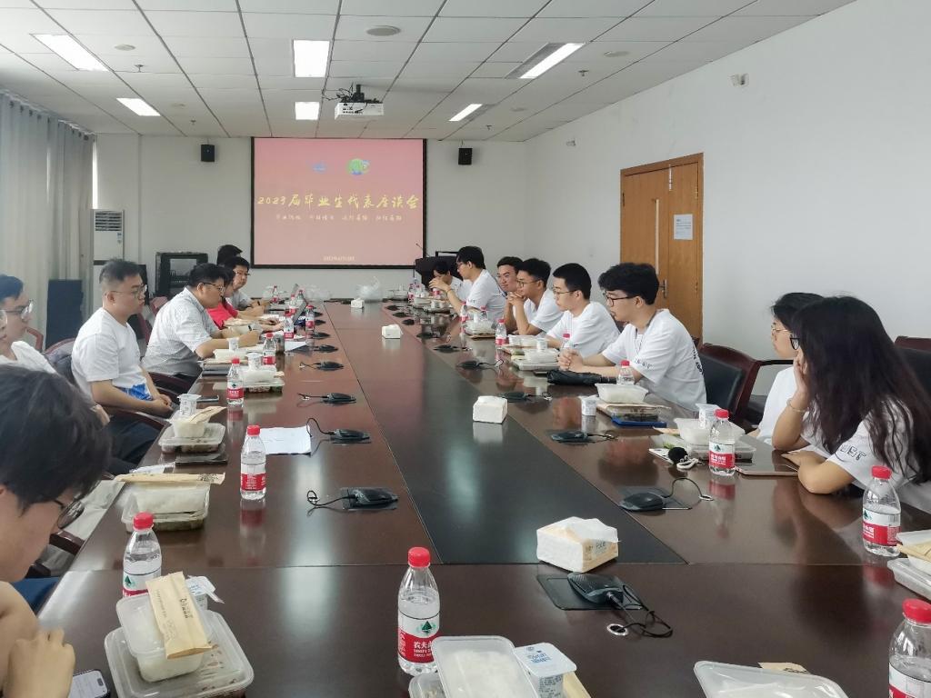 6月13日中午,bwin必赢2023届毕业生代表座谈会在东十七楼D304会议室召开。学院党委书记葛茜、院长邱才明、副院长杨铀、辅导员及16名本硕博毕业生代表参加本次座谈会,会议由党委副书记陈世英主持。