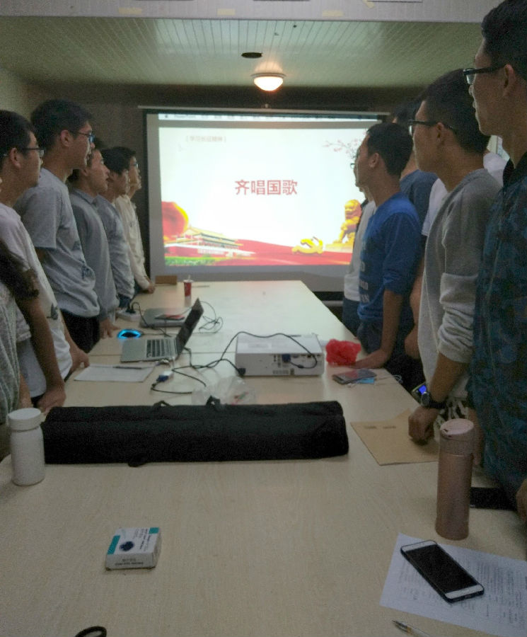 首先,全体同学起立唱响国歌。