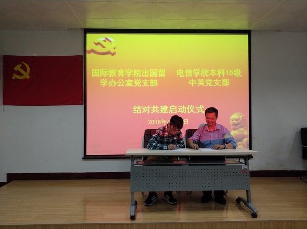 4月19日,国际教育学院出国留学办公室党支部与我院本科15级中英党支部结对共建启动仪式活动举行。