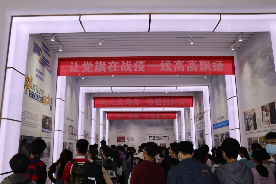 在华中大战疫纪展区,一份份义无反顾的请战书、一幅幅医务人员竭尽全力救治病人的照片、一件件见证了基层社区志愿者在疫情期间挺身而出为居民服务的物品,将我们带回了抗击疫情的一线,让我们深刻感受到华中大人在国难当前、民族危急时刻的英勇担当。