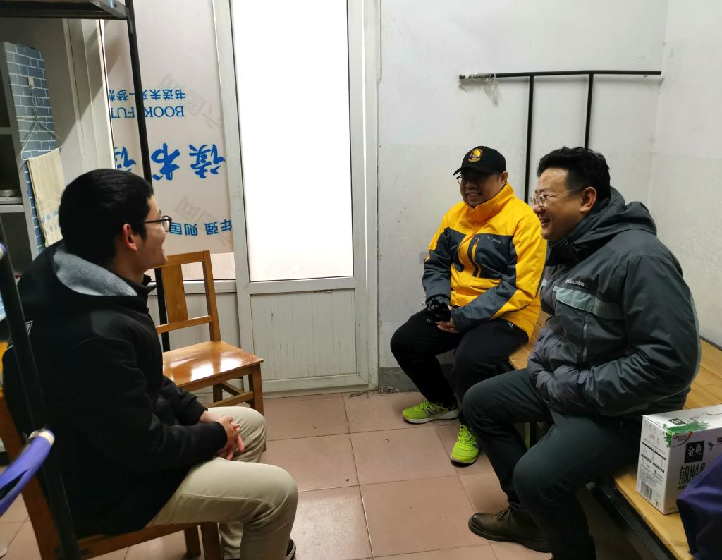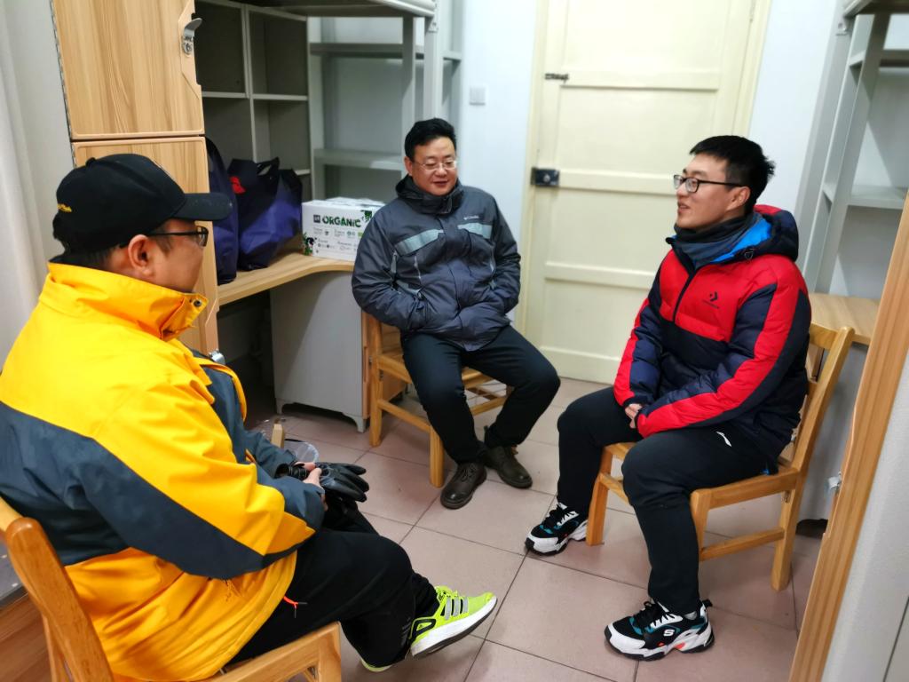 1月25日,正值北方小年,bwin必赢党委书记郑小建、党委副书记陈世英、教师班主任代表陈柯来到学生寝室,分别与留校学生进行亲切交流,表达关心和问候。
