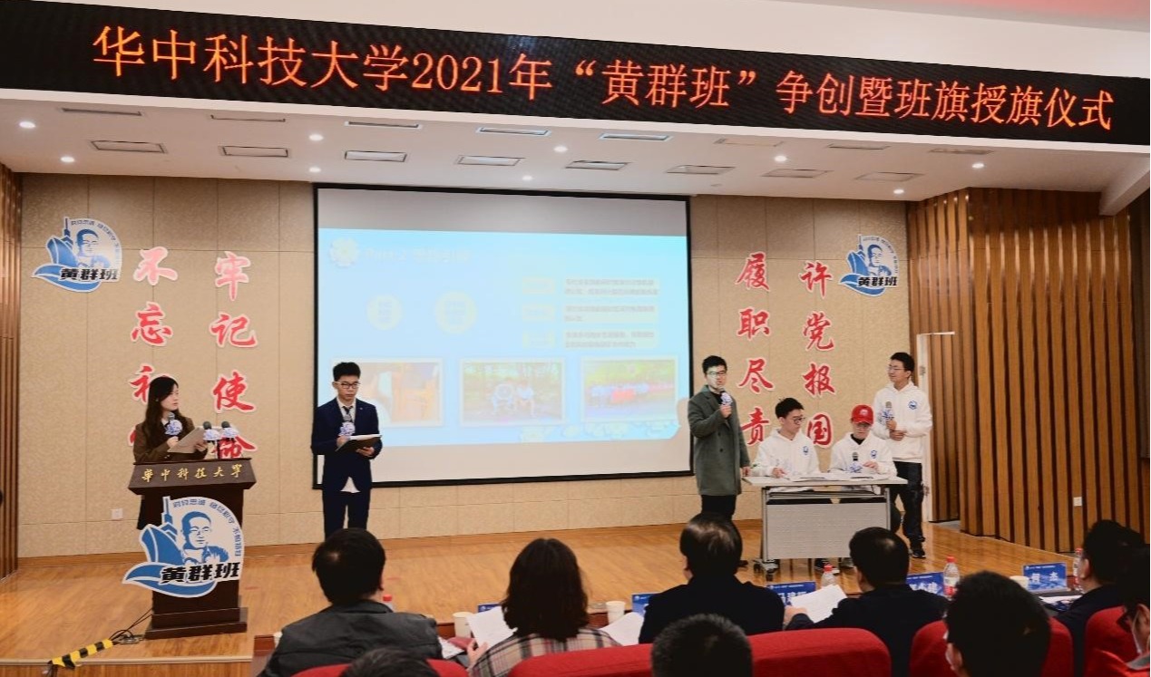 11月21日下午,2021年华中科技大学“黄群班”争创暨班旗授旗仪式在大学生活动中心B305报告厅顺利举行,经过院系申报、材料预审,电信提高2001班代表我院成功入围。该班在过去一年里,秉承“立诚勿怠,格物致知,跬步千里,功不唐捐”的班训,为创建“黄群班”不懈努力!答辩环节中,提高班用情景剧的形式对班级建设各个方面的成果做出展示,代表学院首次获评华中科技大学“黄群班”称号!