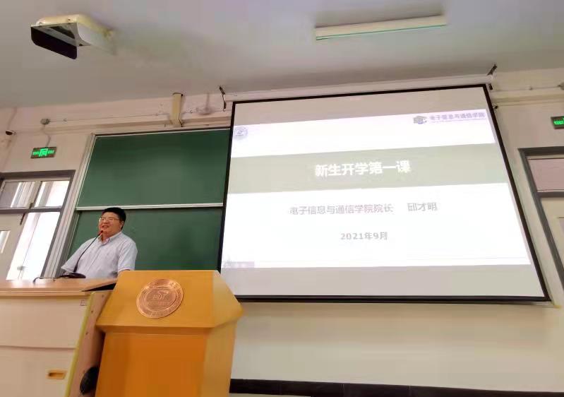 9月9日下午,bwin必赢院长邱才明教授为全体研究生新生讲授了开学第一课。邱院长首先以学院历史沿革、学科建设、卓著贡献、知名校友等方面为出发点,阐明了学院以“感知+智能+通信”为中心的学科架构、建设重点与发展动态,激励同学们铭记初心使命,做好继承者和接班人;树立远大理想,做好立志者和践行人。邱院长强调读研期间应主动进行有价值的学术研究,敢于创新且乐于创新;希望研究生们珍惜校园生活,合理利用资源,对未来做好清晰规划,上大舞台、干大事业。