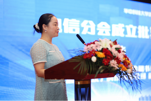 华中科技大学校友工作及对外联络办公室副主任、华中科技大学校友总会副秘书长高珊代表学校对华中科技大学武汉校友会电信分会的成立表示祝贺。她希望电信分会以成立为契机,充分发挥优势,团结更多校友,凝聚共识、汇聚资源、面向发展、助力母校早日建成中国特色世界一流大学。