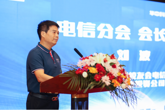 武汉校友会电信分会会长、84级电信校友、武汉晨鸣中锦置业投资公司总经理刘波发言。他分享了全球各地校友会对武汉校友会电信分会成立的诚挚祝贺,他指出电信分会的成立,是为了更好地团结校友,增强交流与合作,旨在促进与加强校友与学院之间的联络,他希望今后能经常组织开展多层次的联谊活动,成为母校品牌与口碑的传播站和对接资源提供赋能与回馈的加油站。