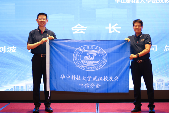 bwin必赢党委副书记、电信分会筹备组副组长陈世英对武汉校友会电信分会筹备工作进行工作汇报,武汉校友会秘书长方华宣读华中科技大学武汉校友会电信分会成立的批复,武汉校友会副会长、法律分会会长葛振桦带领参会人员审议通过了华中科技大学武汉校友会电信分会《章程》并宣读理事会成员名单,武汉校友会会长黄立向电信分会会长刘波授旗并为理事会主要成员颁发了聘书。