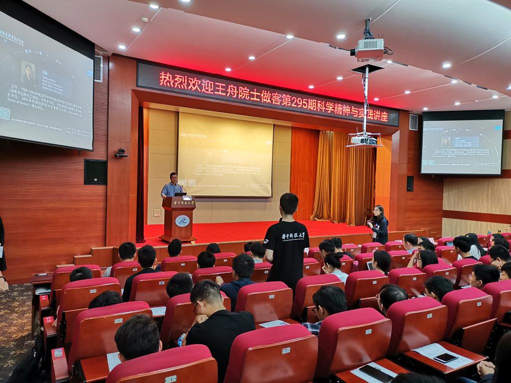 授聘仪式后,王舟院士受邀做客第295期“科学精神与实践”讲座,为全校师生作了“做一个工程科学家”的主题报告。围绕这一主题,首先向大家介绍了什么是科学家,什么是工程师,从而引出了工程科学家的概念,并用特斯拉的例子让大家对工程科学家有了更深刻的理解。并寄语广大学生在学习和科研过程中要善于培养自己的学习能力,提升自己的思想高度,保持对学术界和工业界前沿动态的关注。