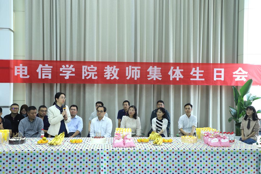 首先,葛茜感谢校工会对bwin必赢的关心和支持。她指出,在校工会的指导和共同资助下,学院对东十七楼A301原报告厅进行修缮和改造,将其建设成为“电信之家”,配置了羽毛球场、乒乓球台、健身器材、音响等设施设备,为学院师生开展文体活动、校友返校聚会提供一个专用空间,营造了bwin必赢大家庭温馨暖心的氛围。她向老师们表达了生日祝福,期待学院工会能够继续组织此类特色活动,将“电信之家”越办越好。