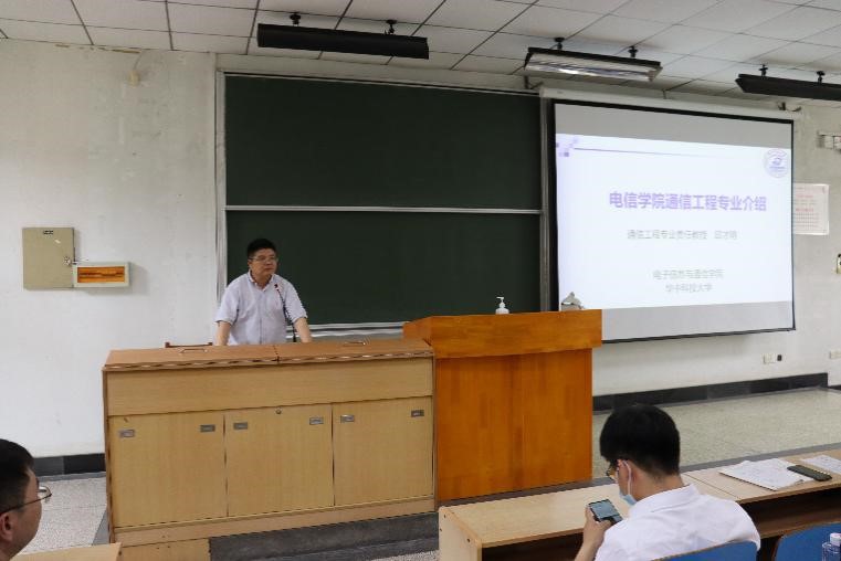 专业负责人马洪、王邦、邱才明分别介绍了电磁场与无线技术、电子信息工程、通信工程三个专业建设情况,三位教授从专业建设基本情况、研究领域、科研团队、科研成果和课程设置等方面出发,详细介绍了学院各专业的定位与特色,现场为2020级本科生指点迷津。