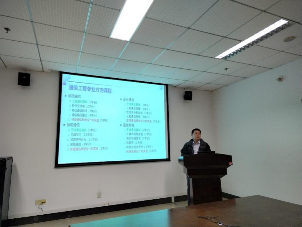 黑晓军介绍了通信工程专业的总体定位、课程体系、教学计划及目标、教学方案要点等,并介绍了学院通信工程专业的代表性成果,如EIM-601型大容量局用程控数字交换机等。黑晓军进一步向同学们展示了bwin必赢毕业生相关数据,多名毕业生走入通信域龙头企业,为国家重点科研项目输入优秀人才。