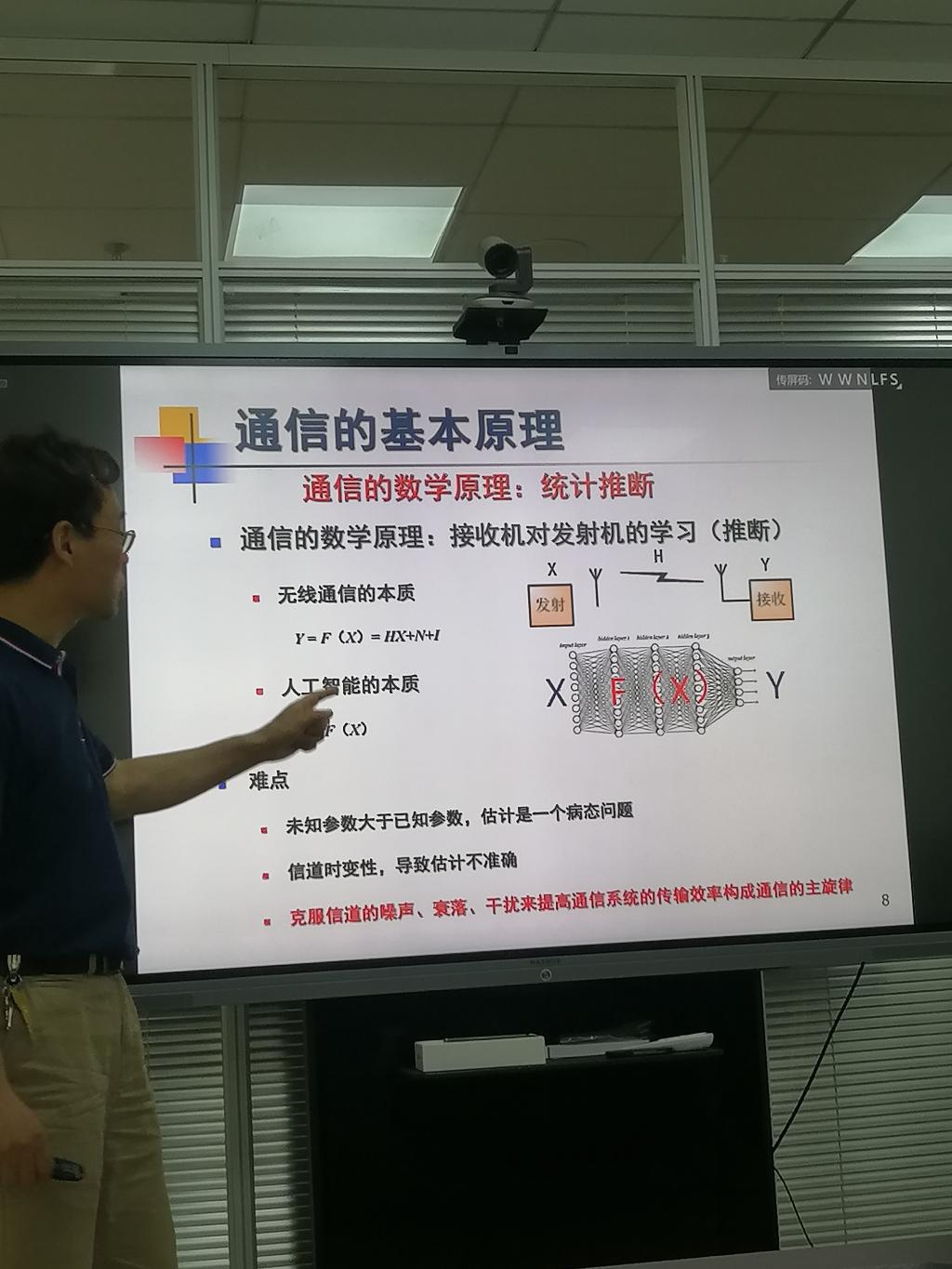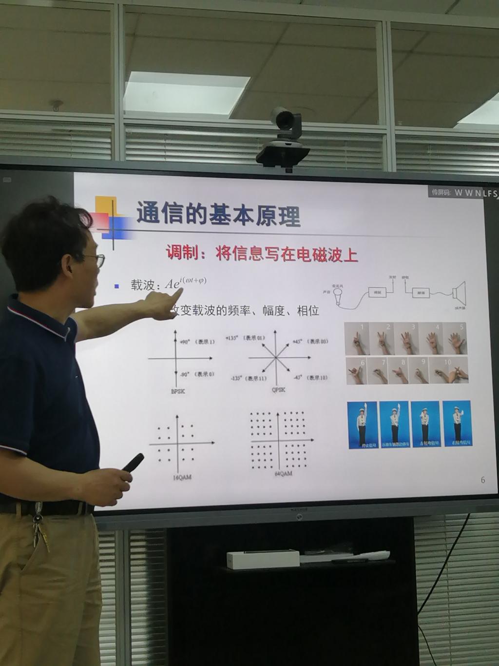 刘应状从通信的基本内涵、课程设置和就业情况三个方面进行了介绍。从原始的纸质通信方式切入,刘应状讲到现在的移动通信,指出移动通信就是电磁波来代替纸作为介质,引出通信的本质:把信息写在电磁波上去传播。讲解既生动形象,又触及本质。之后,刘应状又分别从物理和数学角度讲解了通信的基本原理,不仅强调了调制的作用是通过改变载波的频率、幅度和相位,“把信息写在电磁波上,还强调了统计推断等数学基础的重要性。