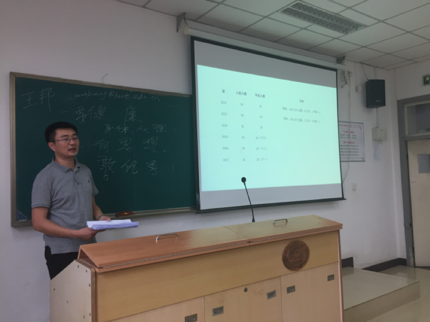 接着,新生班主任王邦老师给大家提出了三条开学寄语:“要健康、有思想、敢优秀”。要健康:各位同学们在校期间要锻炼出健康的体魄,树立为祖国健康工作50年的决心;并且要培育健康的心理,身体和心理上都经受得住学习生活的种种考验;有思想:各位同学们要能从纷繁复杂的各种信息中,结合自身实际,思考对自己发展和对国家建设最有意义的奋斗目标和实践规划。敢优秀:既要敢于竞争,又要敢于承担,最重要的敢于让自己和班级变得更加优秀。